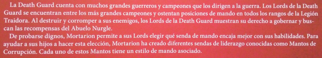 Lo primero que nos muestran son los Lords of Contagion. Poderosos campeones que dirigen a las fuerzas Death Guerd. Estos campeones son agresivos y directos, por lo que prefieren usar la fuerza bruta a la astucia y la sutileza.