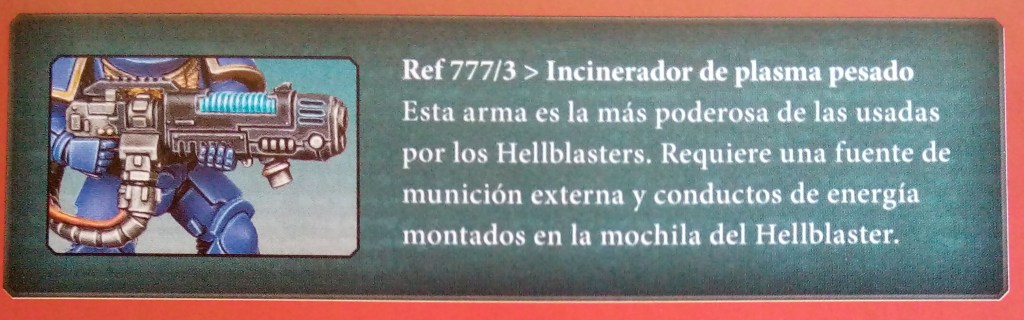 Continuamos con una nueva presentación de la Armería de los Space Marines. En este caso nos presentan el equipo de los Hellblasters. Siendo la unidad de apoyo de fuego preferida de muchos Capítulos, los Hellblasters son capaces de convertir a sus blancos acorazados en restos llameantes gracias a sus armas de plasma.