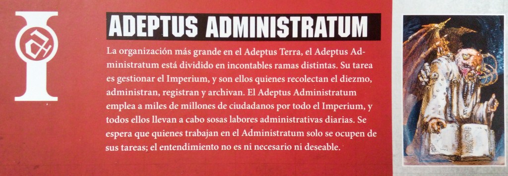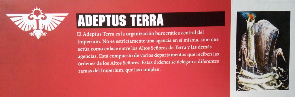 Continuamos con la Jerarquía del Imperium. El Imperium es vasto y la comunicación entre planetas puede ser inefectiva y hasta imposible. En Terra, enormes organizaciones Imperiales tratan de mantener una impresión de orden.