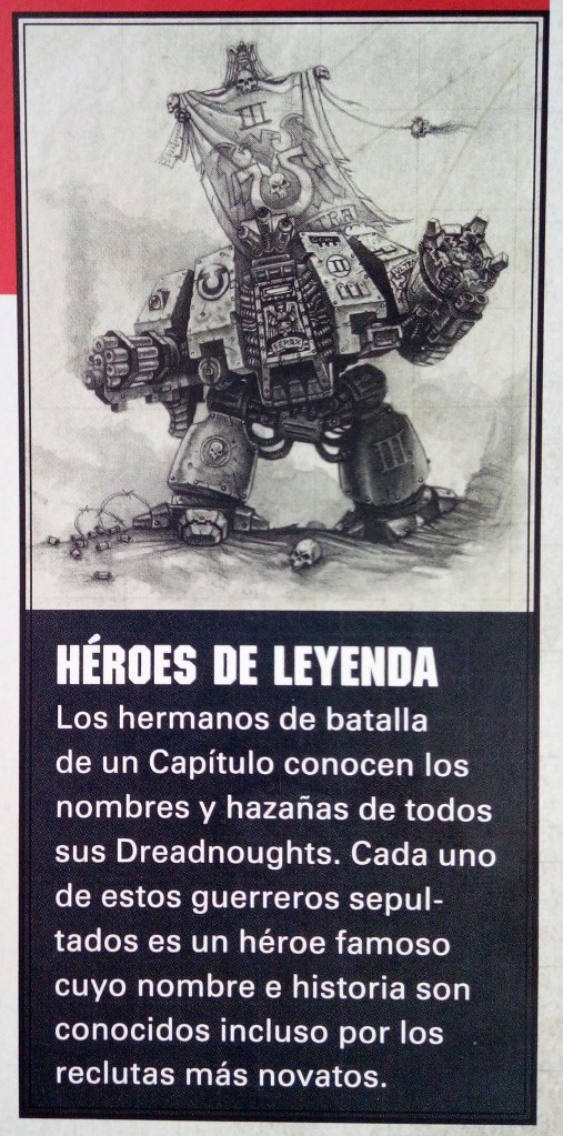 Los Space Marines heridos de muerte se les suele apartar de la batalla para dejar que mueran con dignidad. Algunos, sin embargo, muestran un deseo de luchar excepcional. En lugar de dejarlos morir, los sepultan en un Dreadnought para que puedan seguir combatiendo a los muchos enemigos del Imperium.