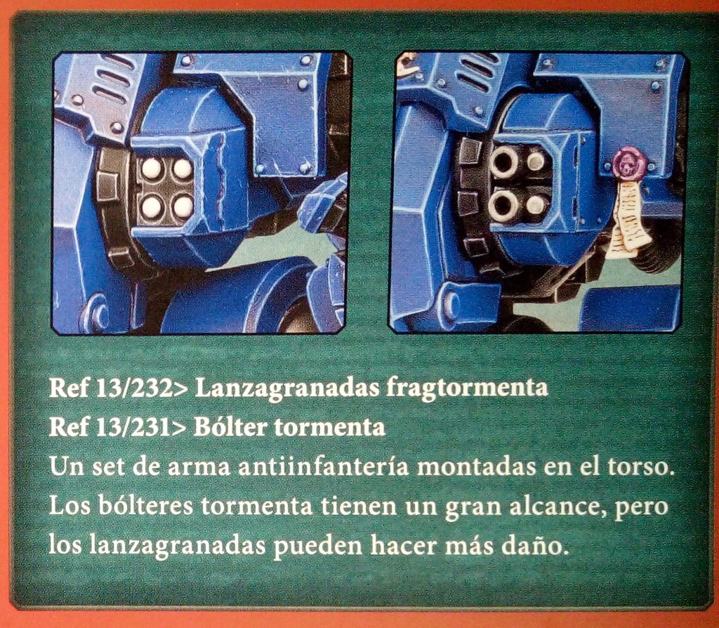 Los Dreadnoughts son unas máquinas de guerra muy versátiles. Pueden equiparse con una amplia variedad de armas en función del enemigo contra el que combaten o el rol que desempeñan en el campo de batalla.