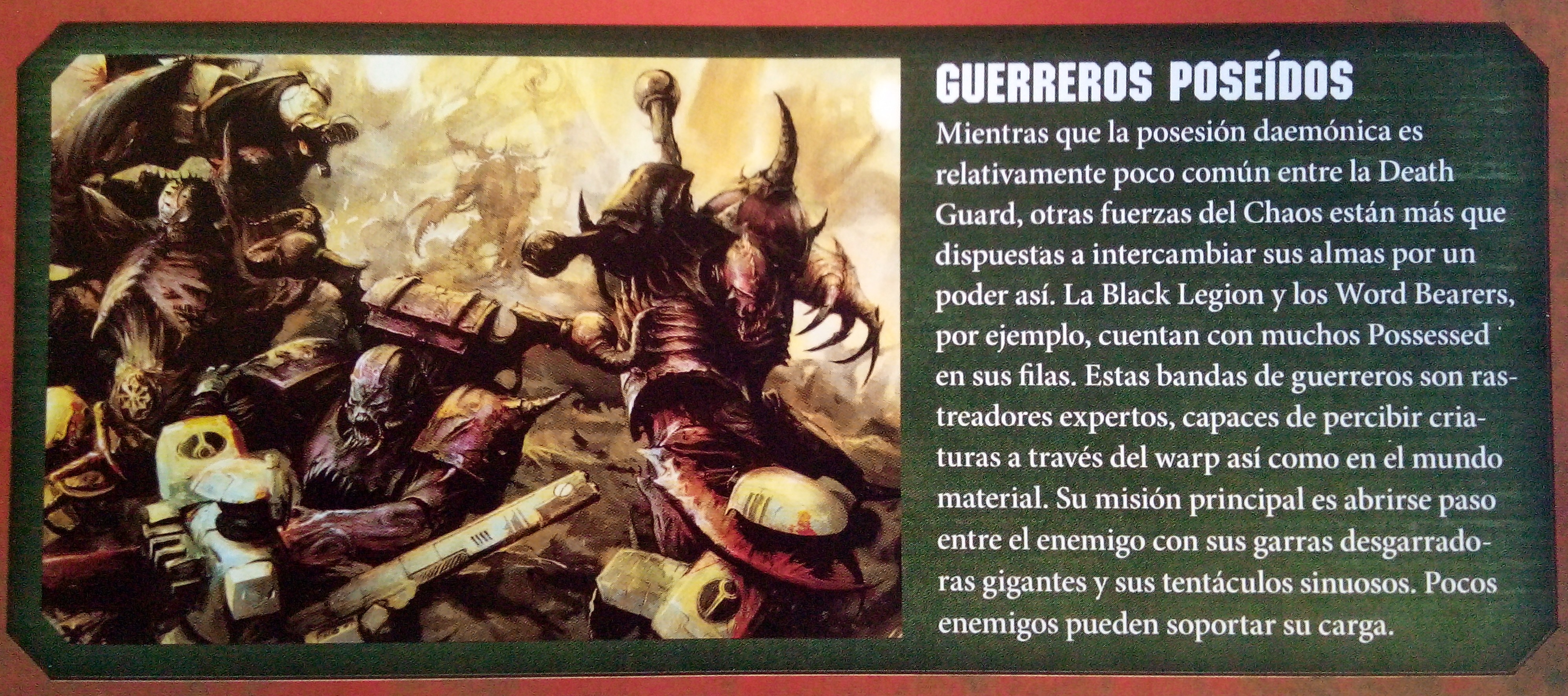 Continuamos con Death Guard Possessed. La mayoría de adoradores del Chaos buscan el poder por encima de todo, y los seguidores de la Death Guard no son distintos. Algunos Plague Marines eligen abrir sus cuerpos a la posesión daemónica, intercambiando lo que les queda de humanidad por el poder que puede proporcionar. Aunque rara vez acaba bien para el anfitrión. Quienes se abren a los Daemons no tardan en encontrarse luchando por controlar sus propios cuerpos.