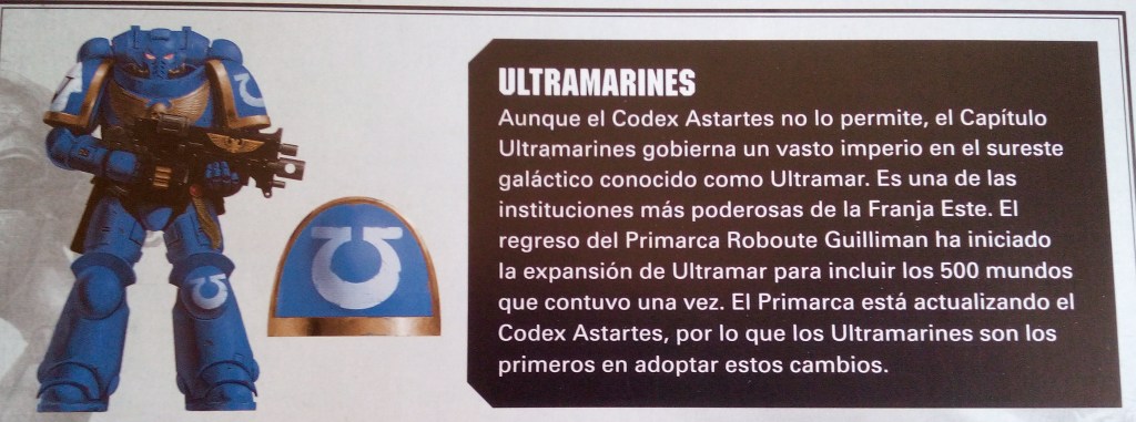 Lo primero que nos muestran son a los sucesores Ultramarines. Se han extendido por la galaxia y continúan defendiendo el Imperium de las muchas y variadas amenazas que acechan los espacios entre las estrellas. Con la galaxia desgarrada por la Gran Fisura, muchos de estos Capítulos libran batallas constantes contra las fuerzas del Chaos y alienígenas.