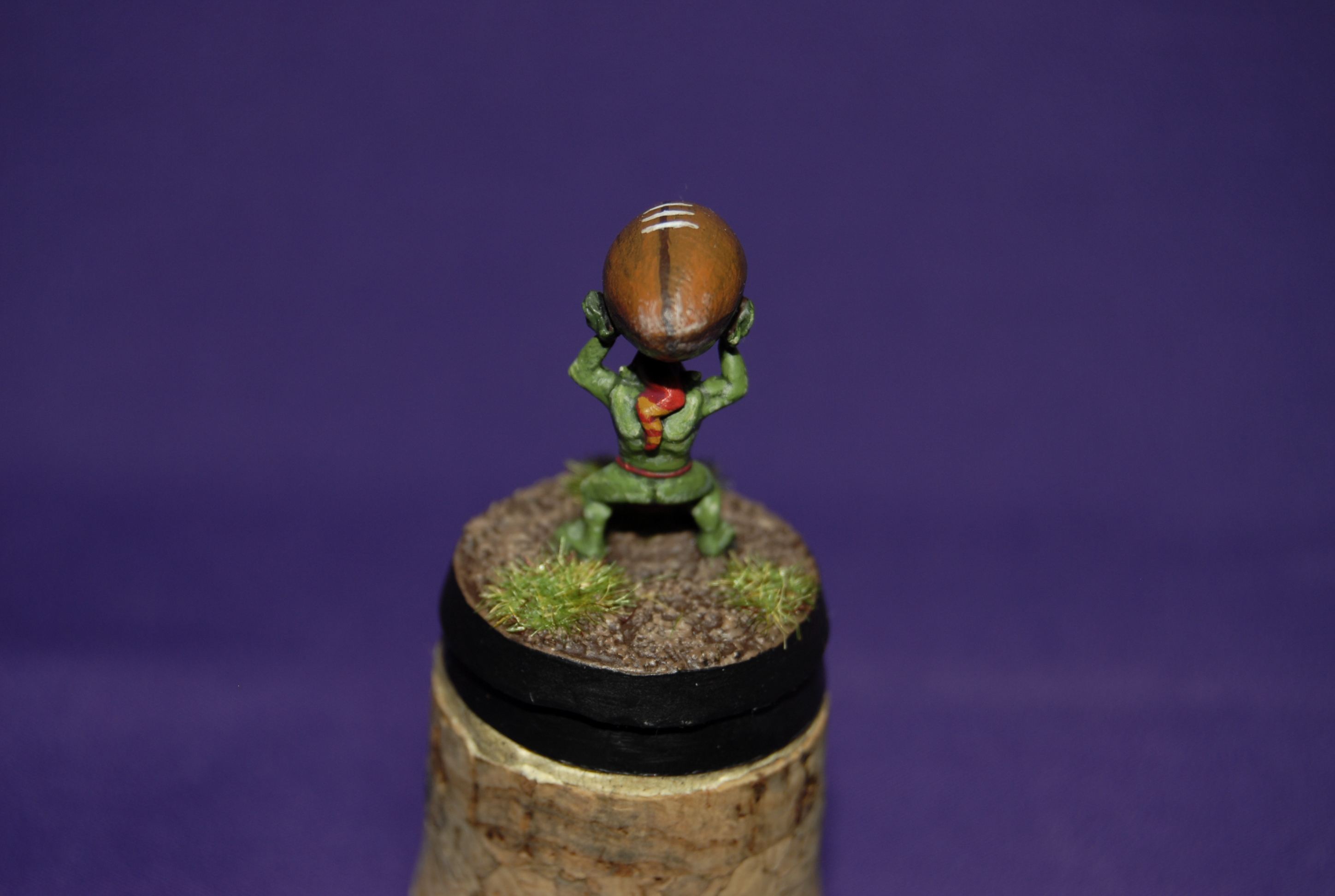Esta vez el que roba el protagonismo es el pequeño snotling, el cual ha sido desprovisto de la bola de cañón para otorgarle un pequeño balón de rugby. Haciendo que sea el primer piel verde en entrar en los equipos de Blood Bowl de El Barbudo Loco!