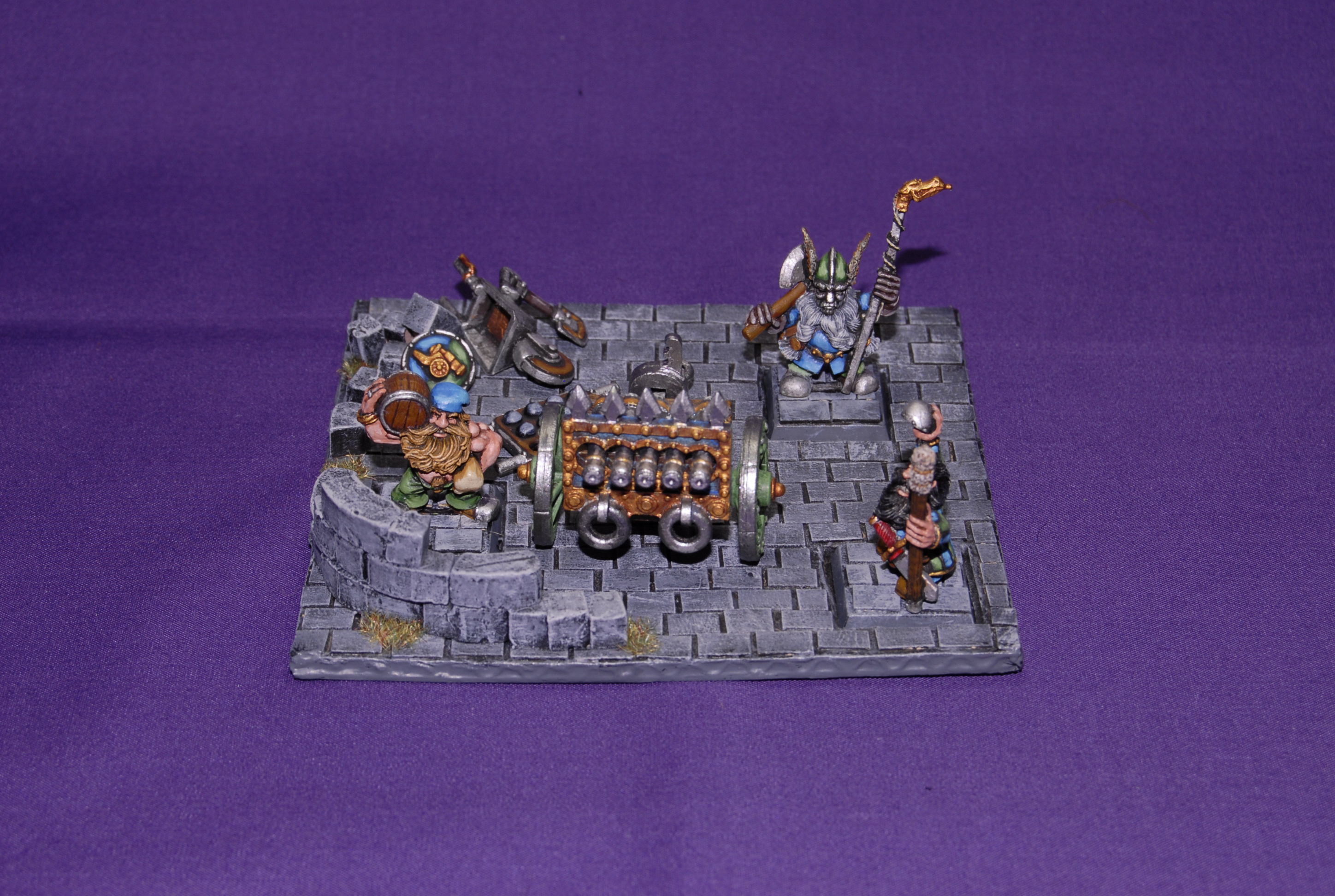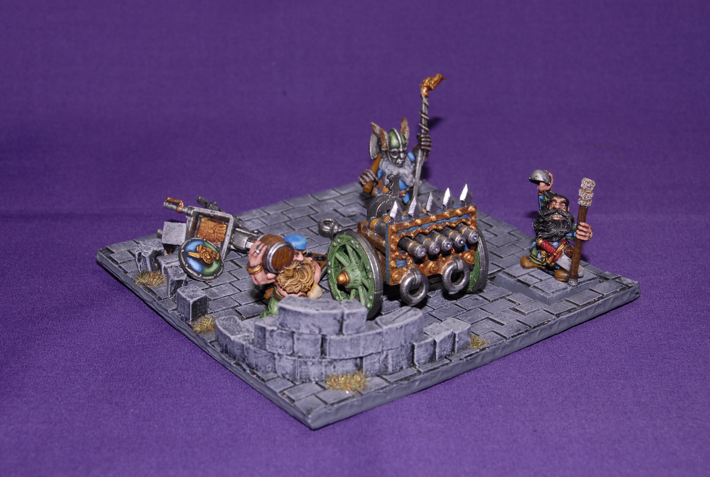 Con la dotación tengo sentimientos encontrados, ya que por un lado tenemos al enano del barril que me parece una miniatura super chula y por otro tenemos al artillero con la mecha, que esa mascara se me hace un poco difícil de ver. Los enanos con mascaras metálicas me tiran un poco para atrás. Y luego tenemos al otro artillero que se me hace muy graciosa la miniatura.