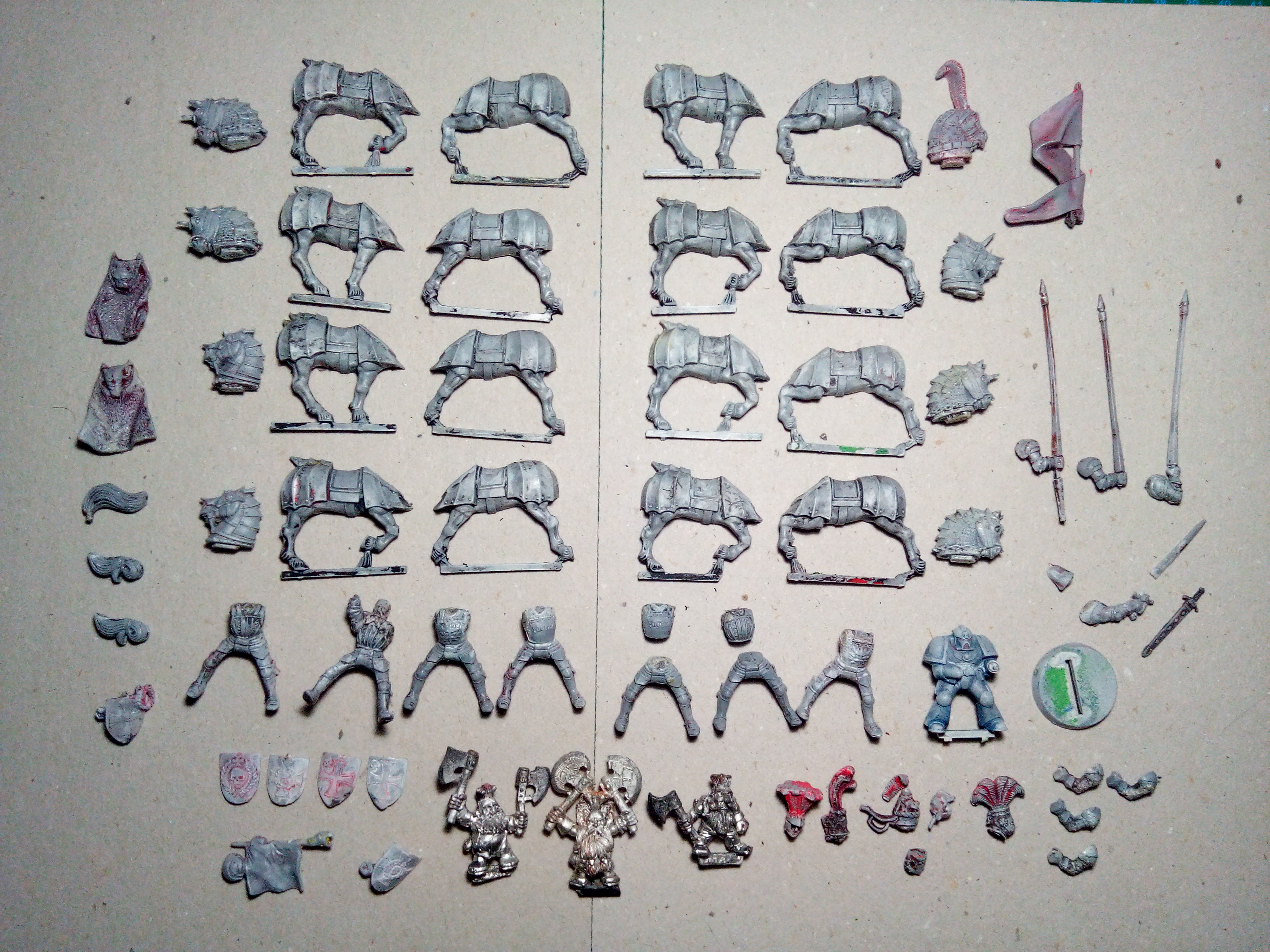 Para esta ocasión nos ayudará una unidad e 8 caballeros imperiales, los cuales necesitaba despintar de cara a darles una nueva vida dentro del ejercito. Como podéis observar, esta vez nos valdremos de un tupper en vez de un bote de cristal ya que es el método menos disolvente de los tres, o menos corrosivo. Por lo que un tupper de plástico puede servir igual de bien que un bote de cristal.
